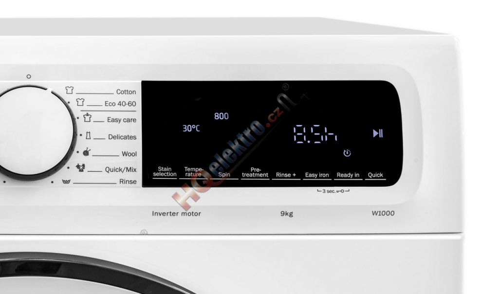 Moderní dotykový LED displej kromě své praktičnosti nabízí extra funkce. Můžete nastavit ukončení programu, a to až 24 hodin dopředu. Na displeji nechybí ani ukazatel, kolik času zbývá do konce praní.