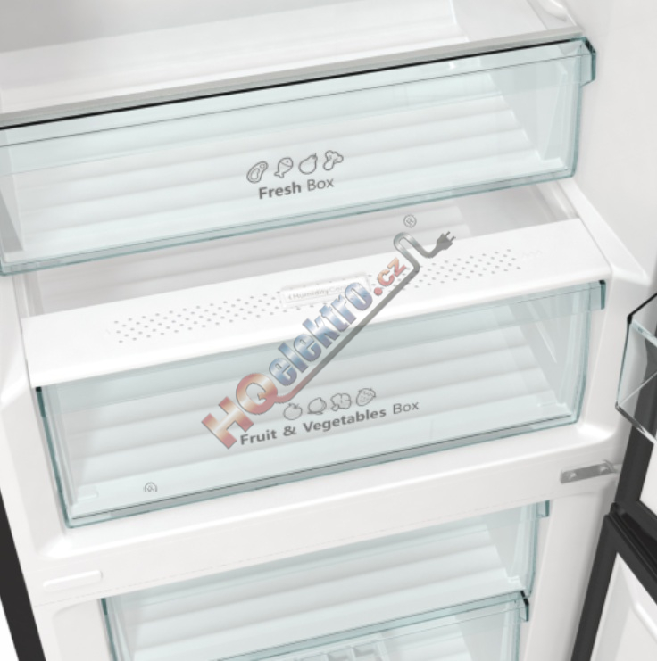 Box na ovoce a zeleninu je vybaven systémem nastavitelné vlhkosti, kterou můžete manuálně regulovat podle požadavků na skladování různých potravin, aby zůstaly déle čerstvé.