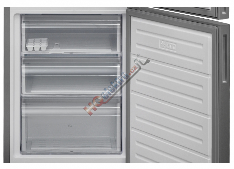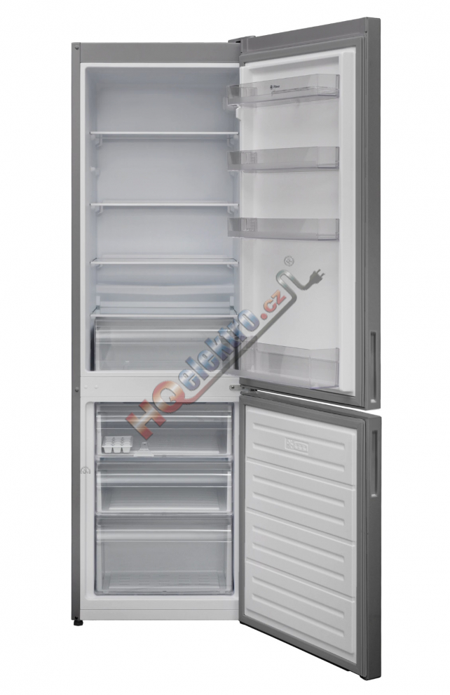 Kombinovaná chladnička s mrazákem dole; Nerez provedení; Celkový užitný objem: 268 l; Možnost změny směru otevírání dveří; LED vnitřní osvětlení; Mechanické ovládání; Rychlé mrazení; Klimatická třída SN-ST; Energetická třída D; Roční spotřeba energie 177 kWh; Hlučnost: 38 dB(A); Hmotnost: 49 kg; Rozměry (VxŠxH): 170 x 54 x 59,5 cm