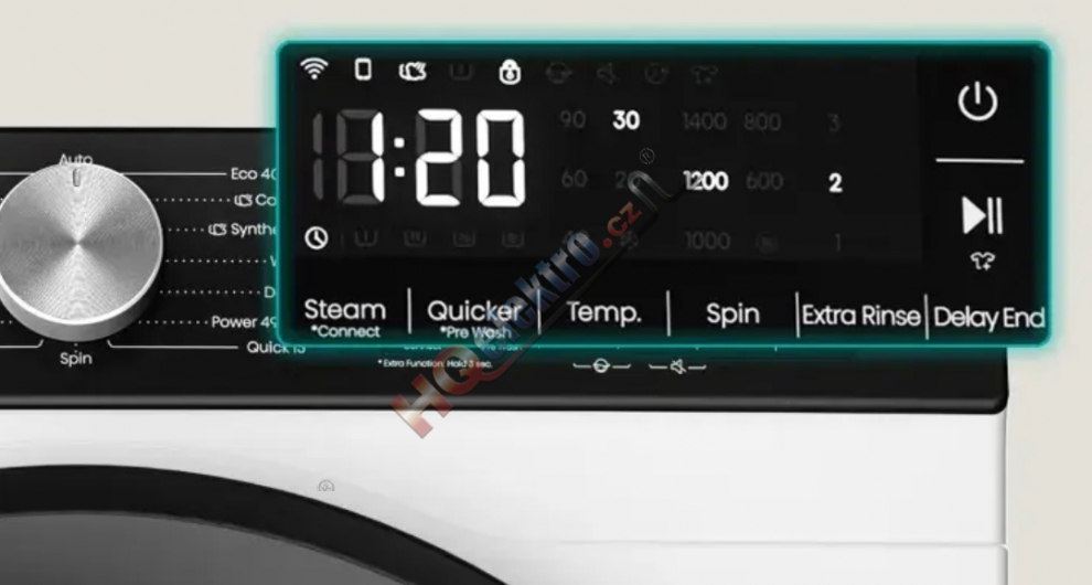 Elegantní LED displej nabízí jednoduchý a přehledný pohled na nastavení vaší pračky. Jemné a zároveň jasné podsvícení pomáhá předejít chybnému výběru funkcí a poskytuje snadno čitelný přehled vašich oblíbených programů.