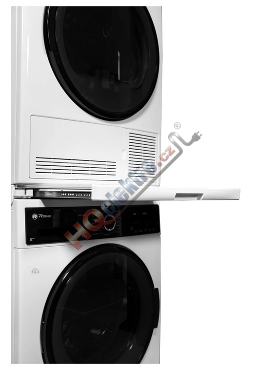 Spojovací mezikus mezi pračku a sušičku s praktickou výsuvnou odkládací poličkou. Kompatibilní s modely praček ROMO řady RWF (s kapacitou 7 kg a více a hloubkou alespoň 52 cm) a sušiček ROMO řady RHD a RCD (s kapacitou 7 kg a více). Maximální nosnost výsuvné poličky: 15 kg.