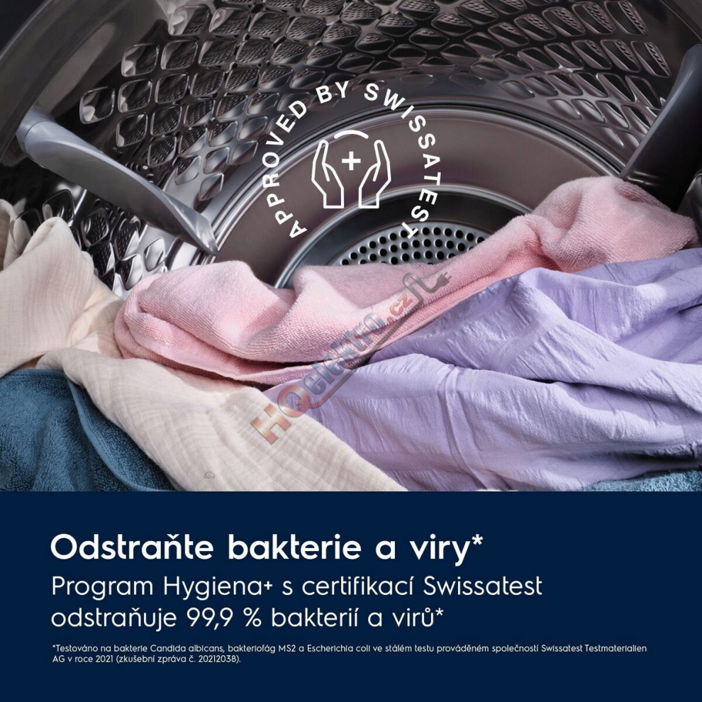 Program Hygiena+ suší při teplotě 60 °C a přitom dezinfikuje a odstraňuje 99,9 % bakterií a virů.